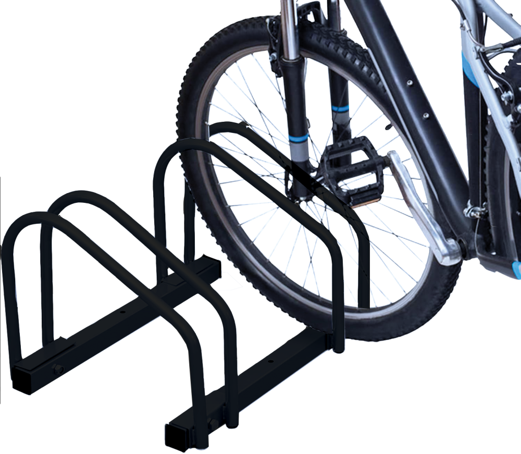 Black rack that can support bikes weighing up to 35 kg / 77 lb.