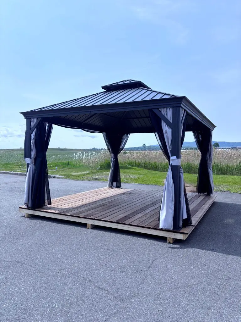 The aluminum and steel structure of hard-roof gazebos is designed to resist rust and damage, requiring little maintenance to maintain its appearance and functionality.